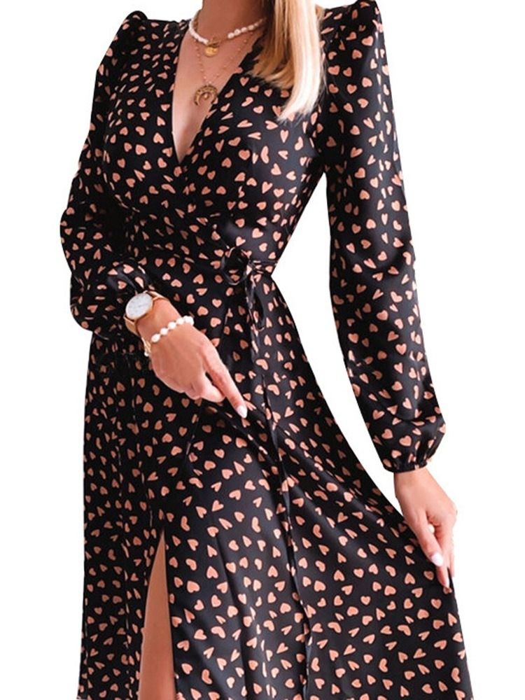 Ankellang V-Hals Langermet A-Linje Fargeblokk Damekjole