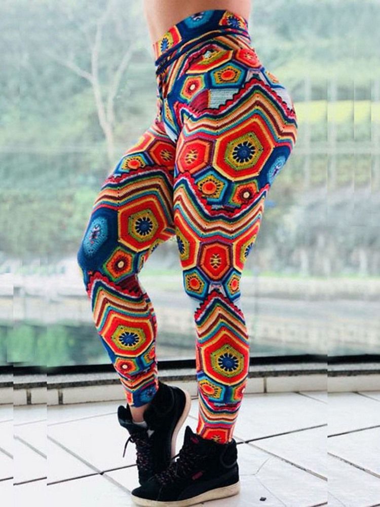 Anti-Svette Geometrisk Polyestertrykk Løpende Yogabukser I Full Lengde Tiktok-Leggings Med Høy Midje