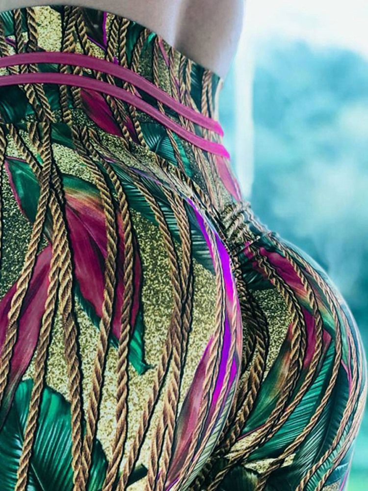 Anti-Svette Polyester Print Full Lengde Yogabukser Høy Midje Tiktok Leggings