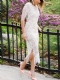 Blonder Asymmetrisk Rund Hals Mid-Calf Kortermet Hvit Kjole