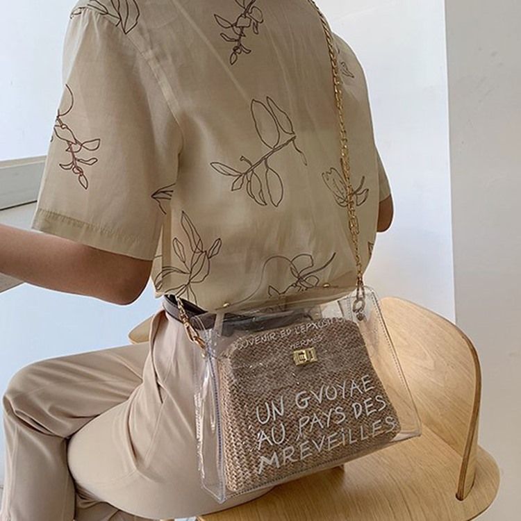 Bokstavtrykk Pvc Firkantet Stråskulder Crossbody-Veske
