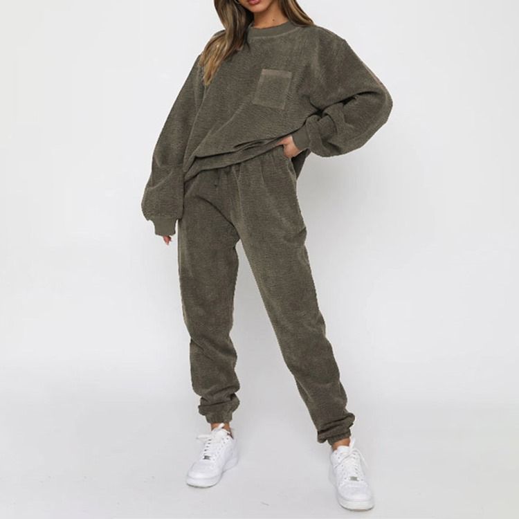 Bukselomme Ensfarget Pullover Blyantbukser Todelt Sett