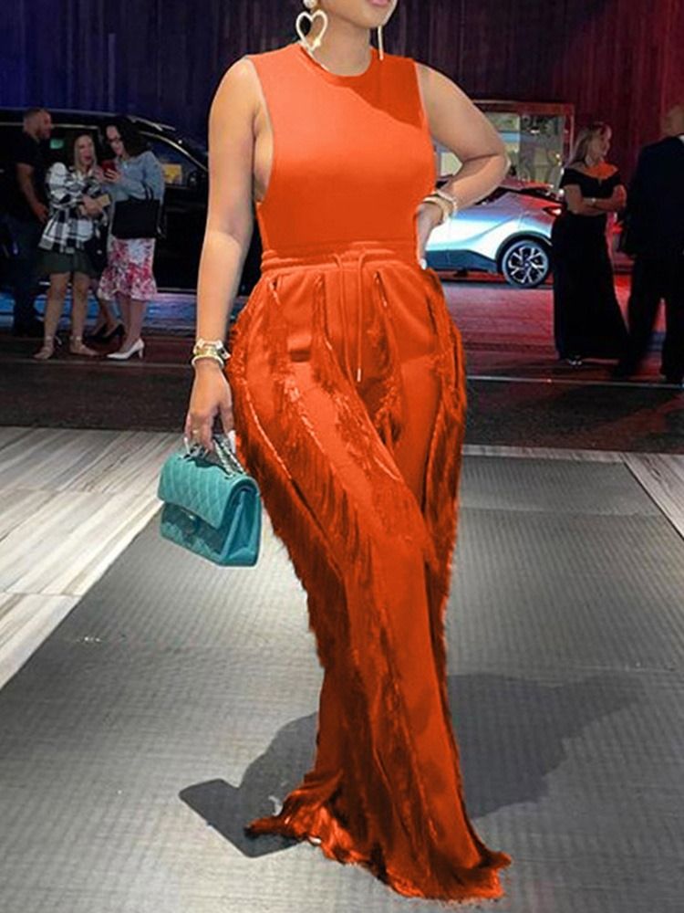 Bukser Vanlig Mote Rund Hals Rett To Stykke Sett