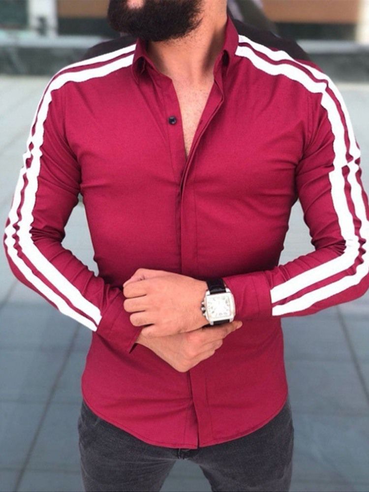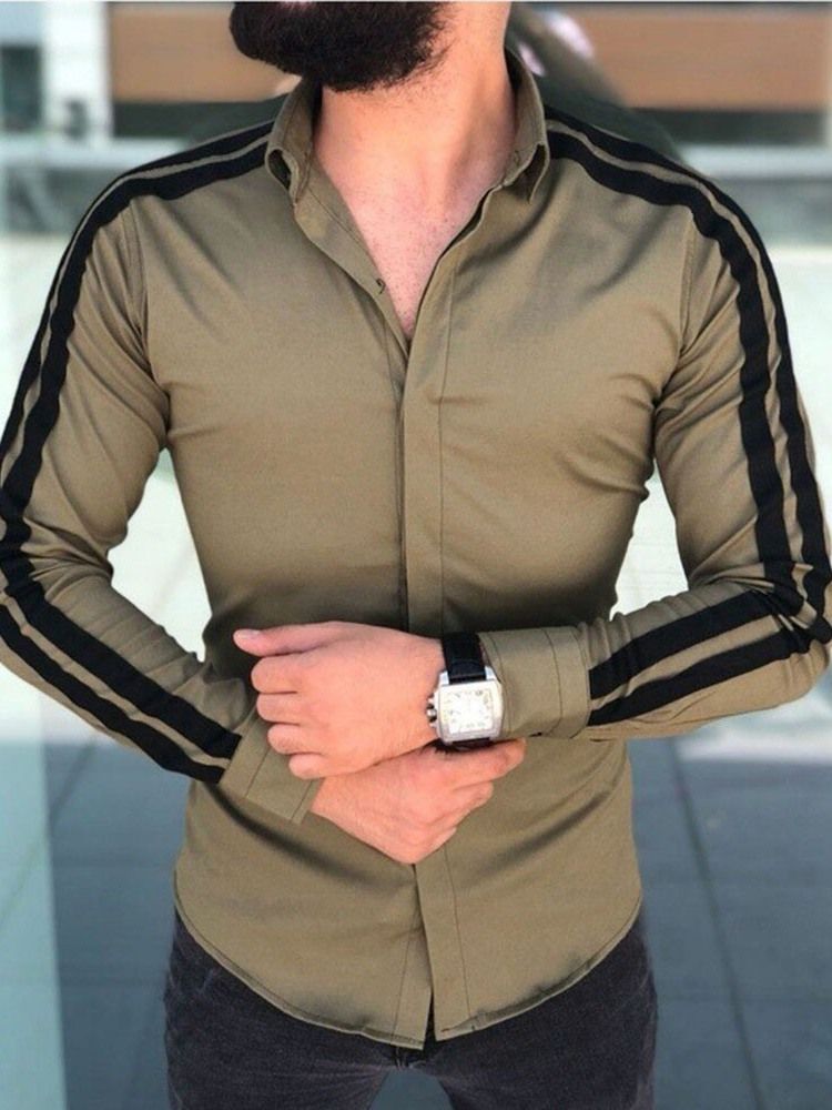 Button Lapel Casual Single-Breasted Langermet Slim Skjorte For Menn