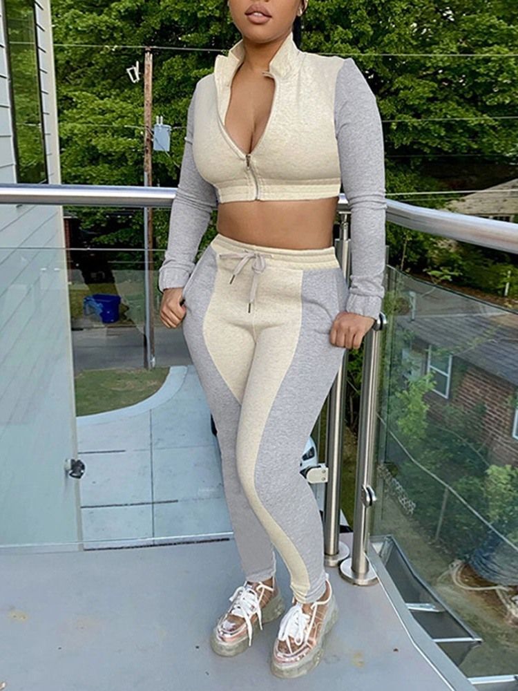 Color Block Patchwork Anti-Sweat Bomull Langermet Glidelås Klessett