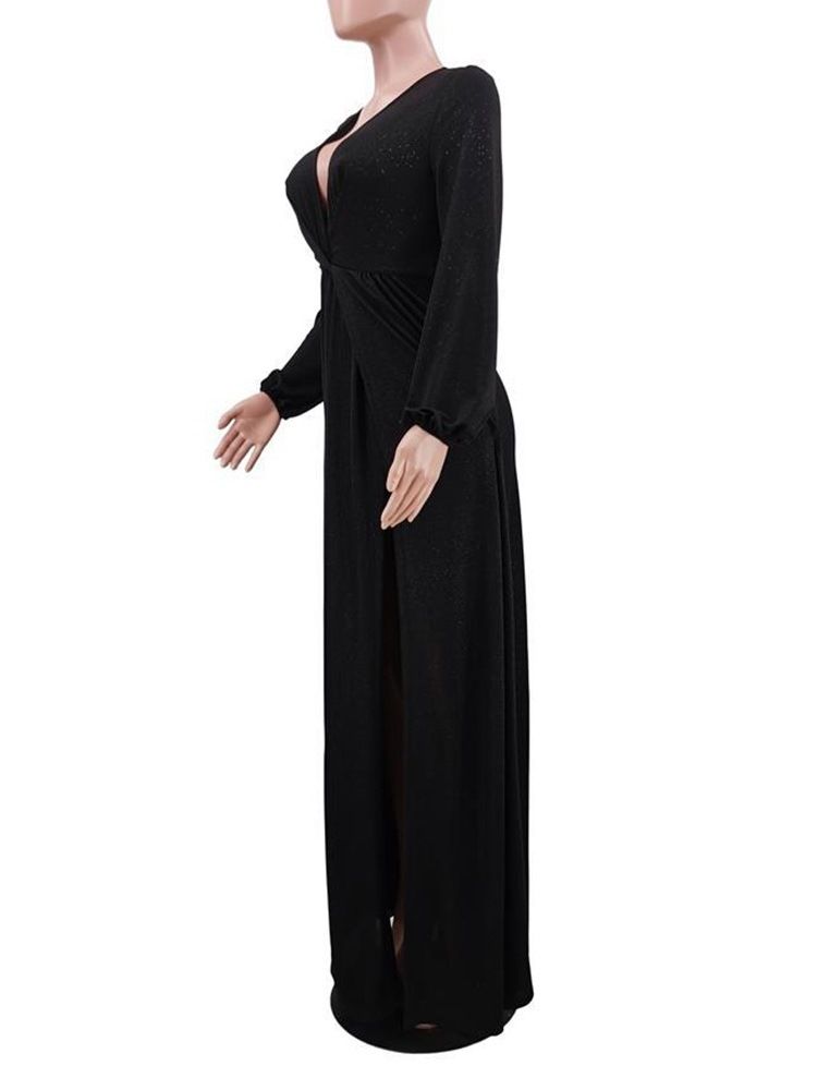 Delt Gulv-Lengde V-Hals Vanlig Asymmetrisk Kjole