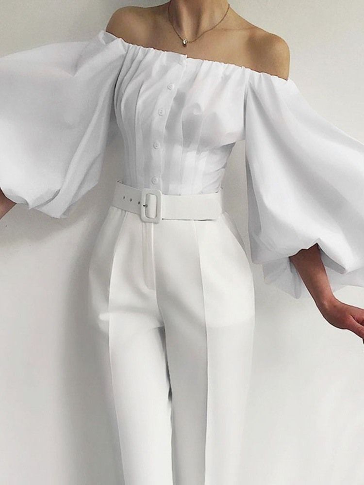 Ensfarget Off-Skulder Lanterneerm Standard Nipoengsermet Damebluse