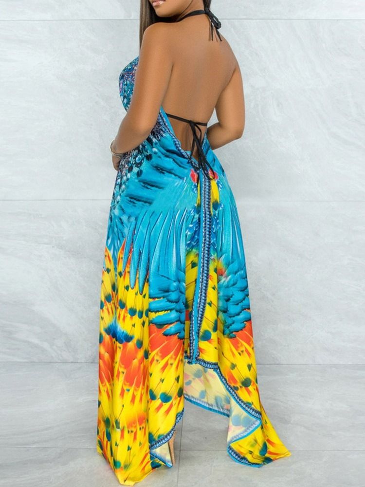 Ermeløs Gulvlengde Asymmetrisk Color Block Pullover Maxikjole