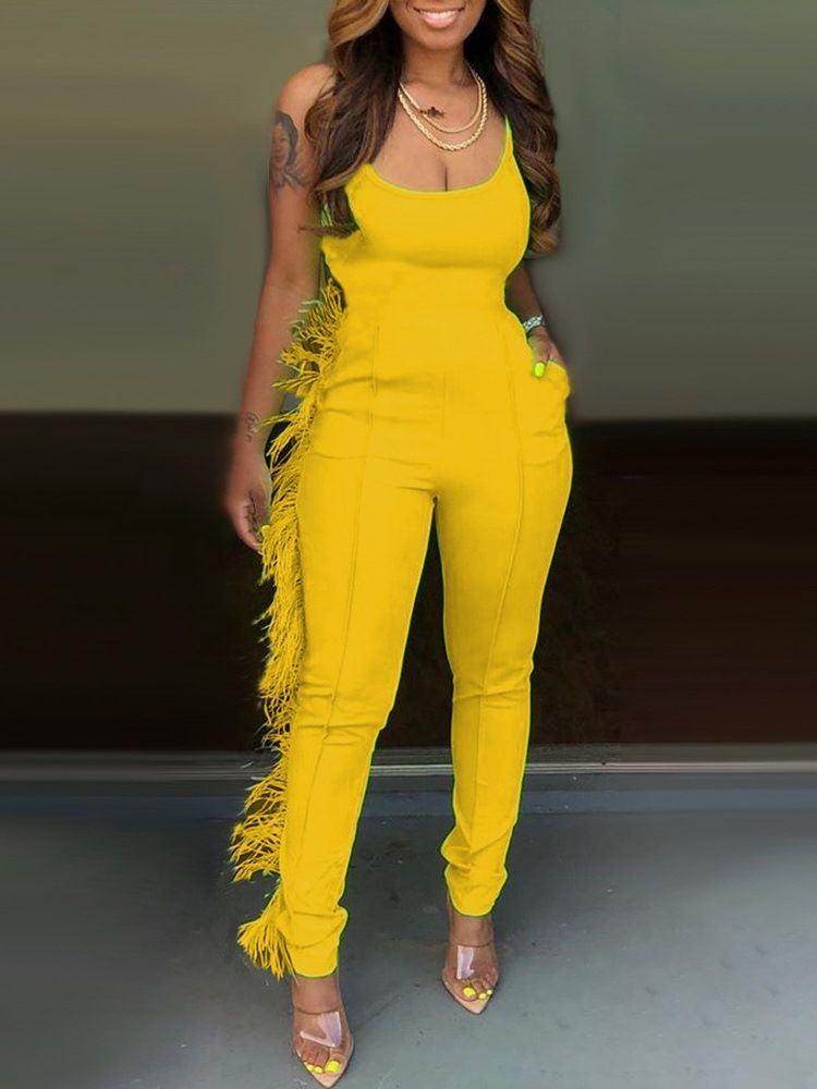 Falbala Full Length Plain Skinny Pencil Bukser Dame Jumpsuit