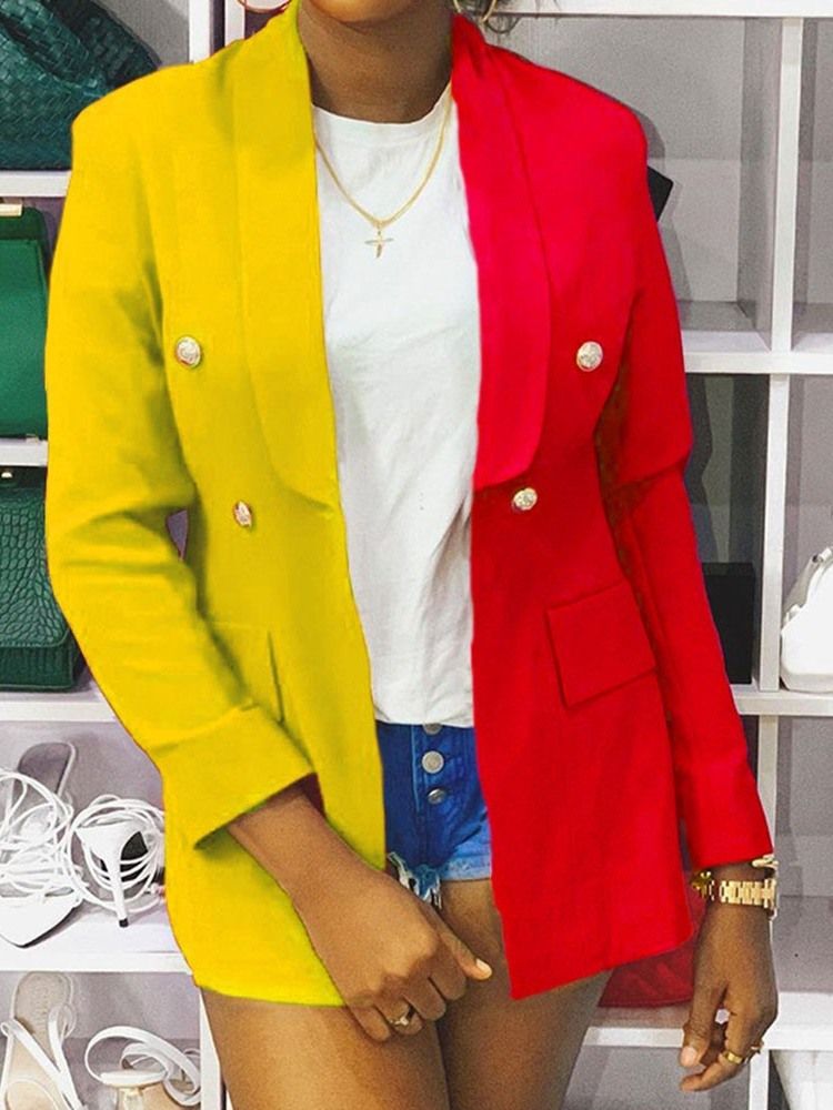 Fargeblokk Dobbelsneppet Lapel-Jakkeslag I Mellomlengde Vanlig Casual Blazer
