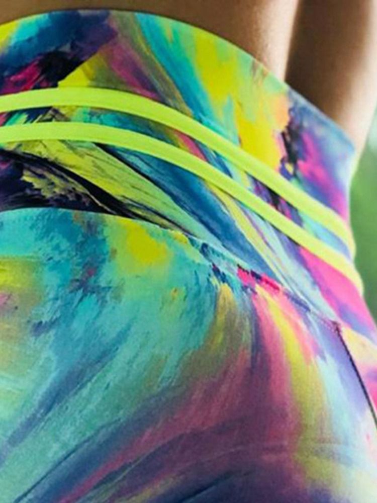 Fargeblokktrykk Pustende Gym Sports Yoga Leggings Yogabukser Høy Midje Tiktok Leggings