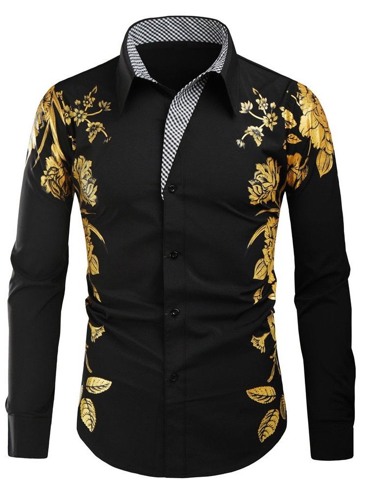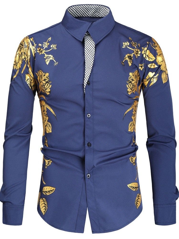 Floral Lapel Casual Fall Slim Skjorte