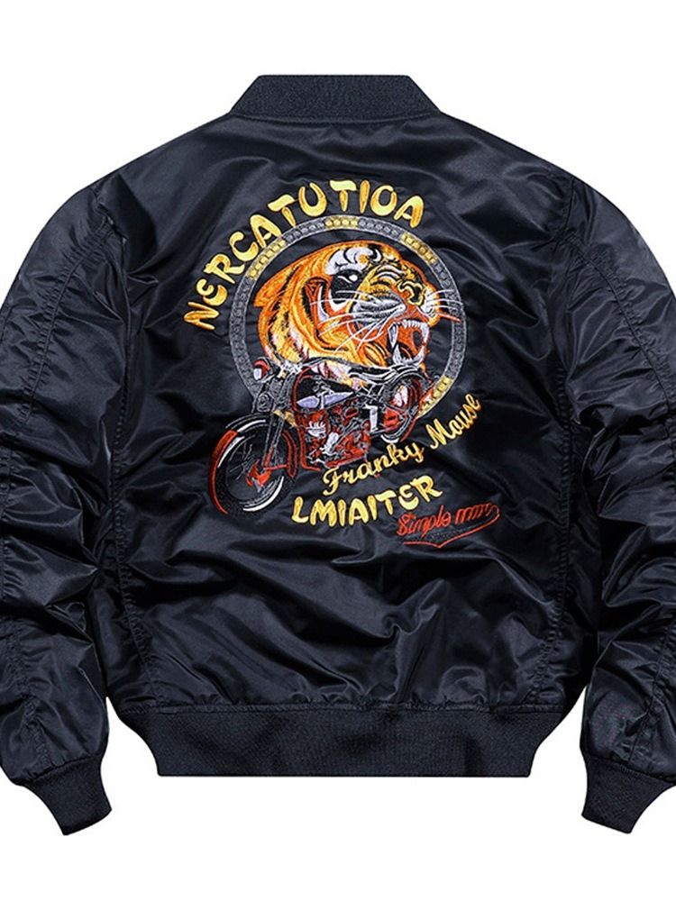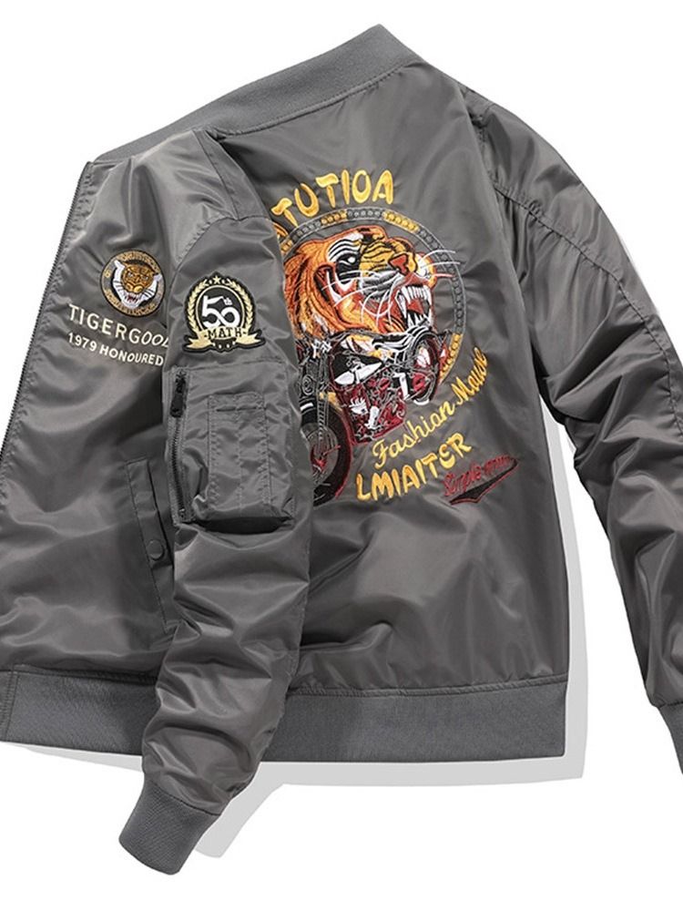 Glidelås Fargeblokk Stativ Krage Løs Herrejakke