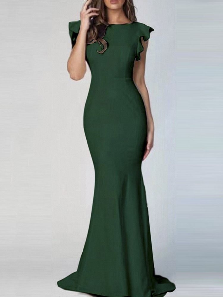 Gulvlang Falbala Pulloverkjole Med Høy Midje Med Rund Hals