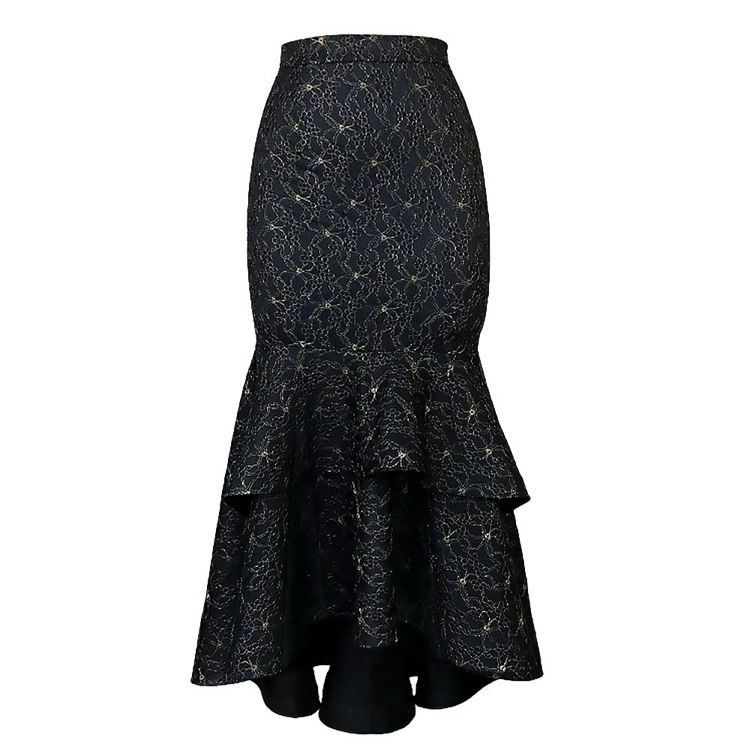 Havfrue Gulvlengde Falbala Moteskjørt Med Høy Midje