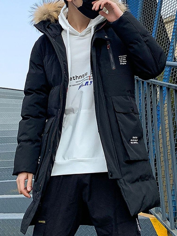 Hette Color Block Pocket Glidelås Europeisk Dunjakke For Menn