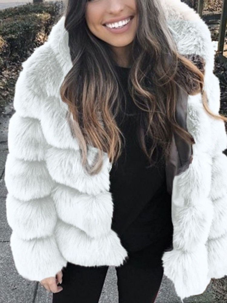 Hette Mellomlang Vanlig Vinter Løs Faux Fur Overcoat
