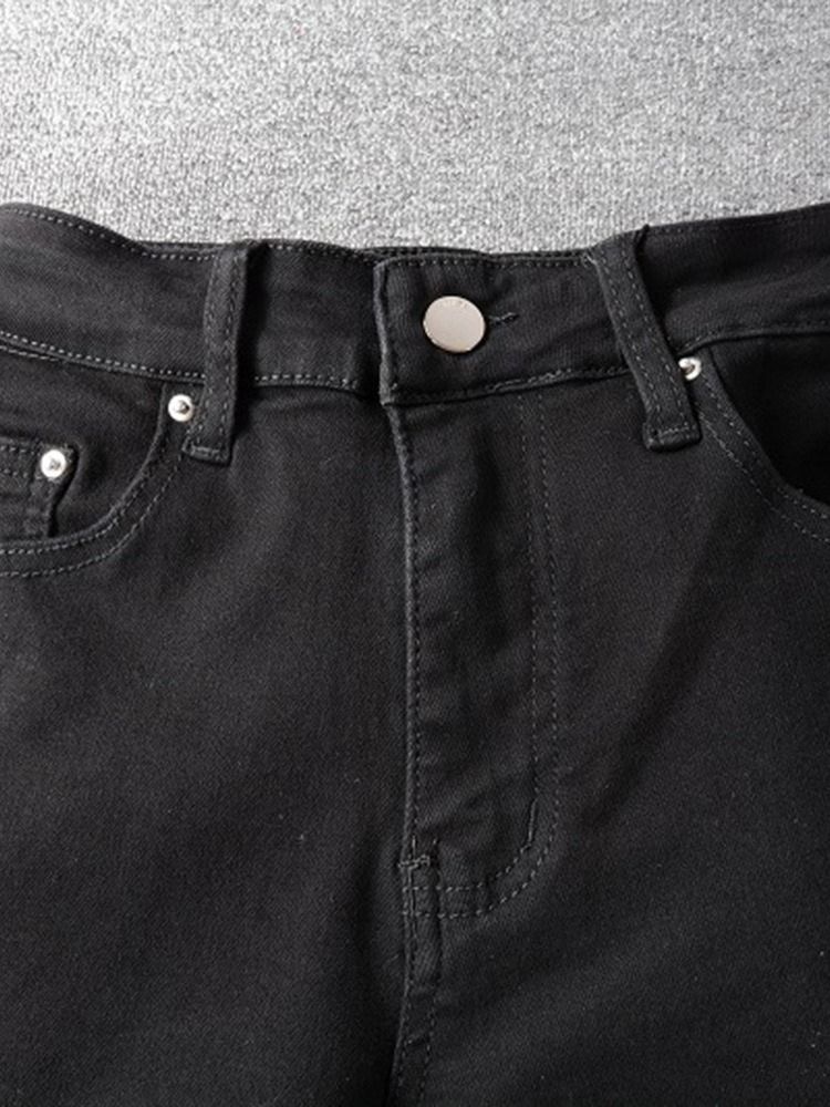 Hole Pencil Bukser Mid Waist Zipper Jeans