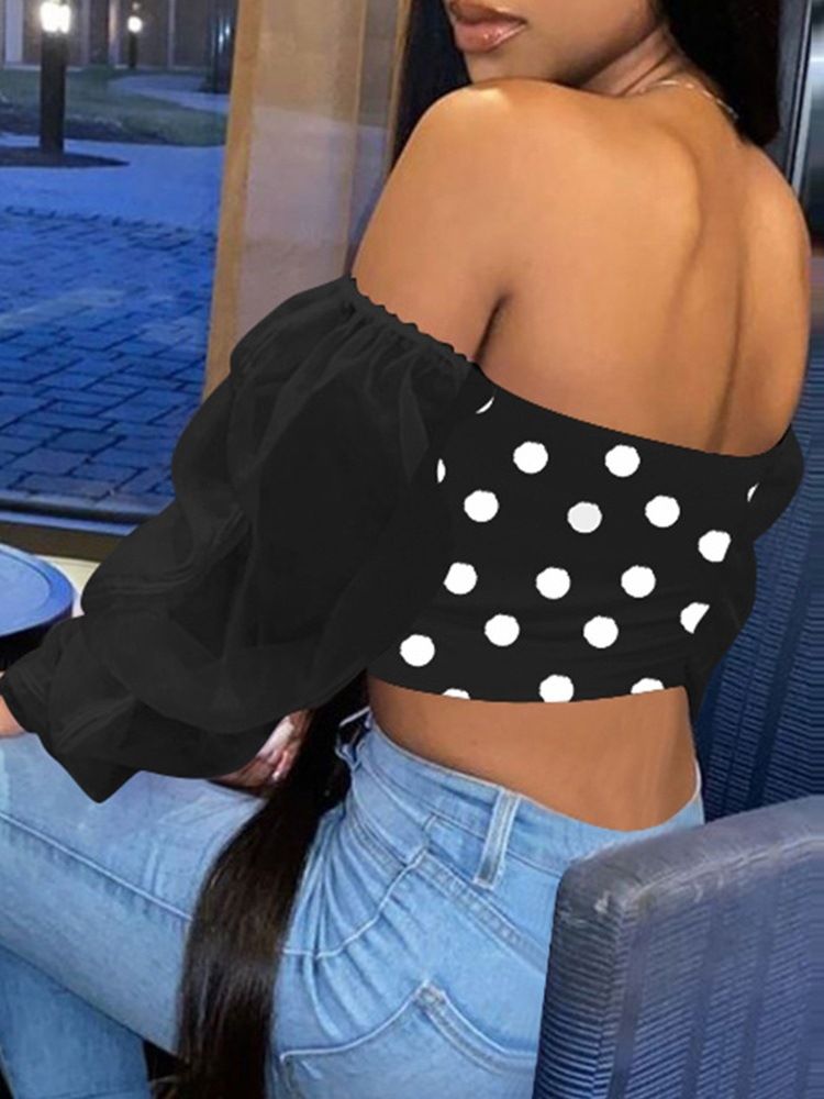 Kort Langermet Polka Dots Slim Sexy T-Skjorte