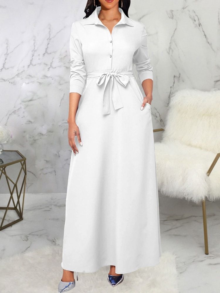Lace-Up Lapel Gulvlang A-Line Vanlig Kjole