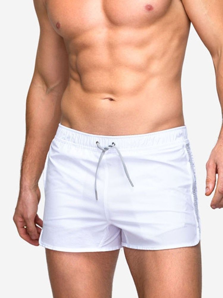 Lace-Up Slank Ensfarget Middels Midje Uformelle Shorts For Menn