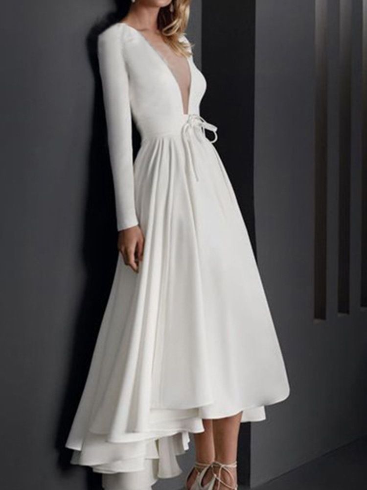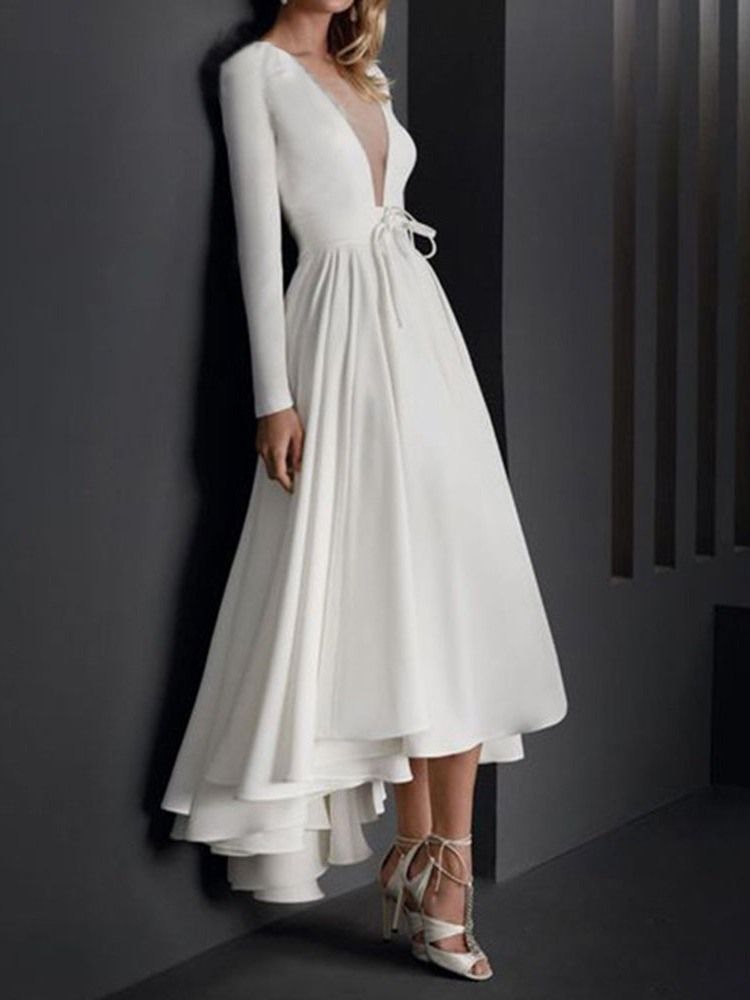 Langermet Asymmetrisk Gulvlengde Vanlig Damekjole