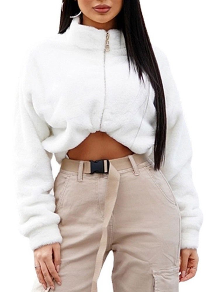 Langermet Jakke Med Rett Glidelås Med Kort Ståkrage