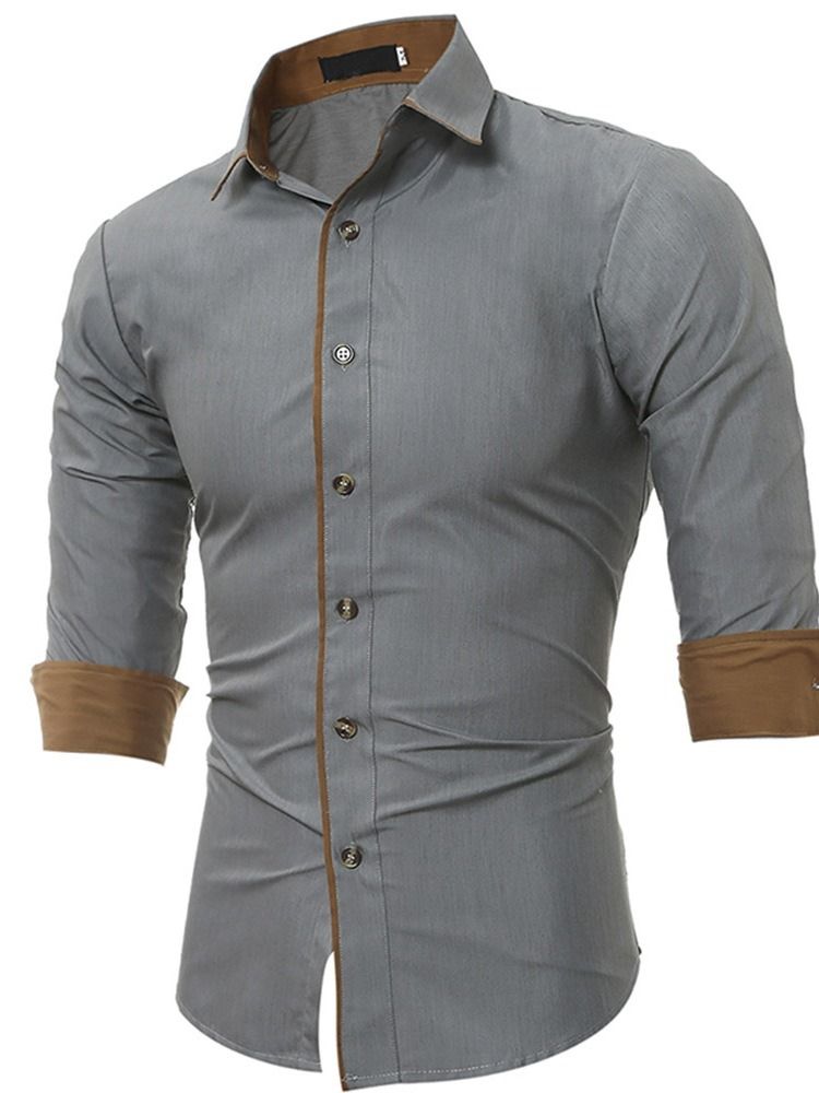 Lapel Patchwork Single-Breasted Slim Skjorte For Menn