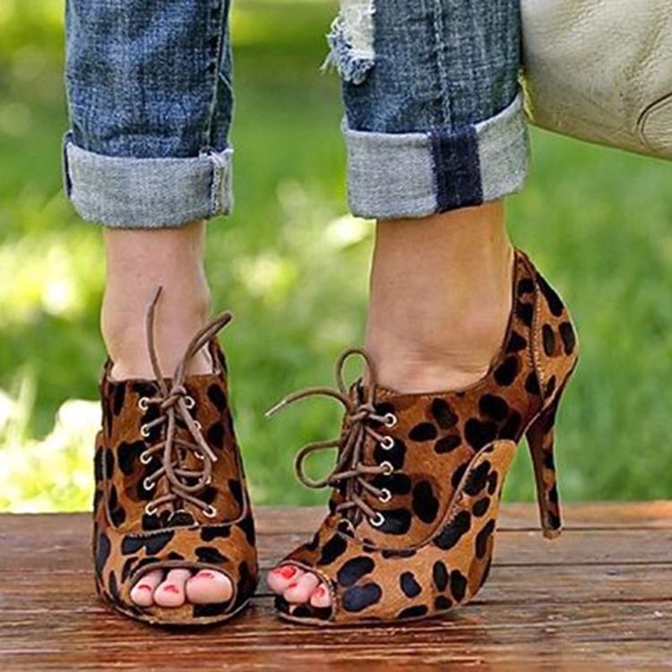 Leopard Print Peep Toe Stiletto Heel Pumps