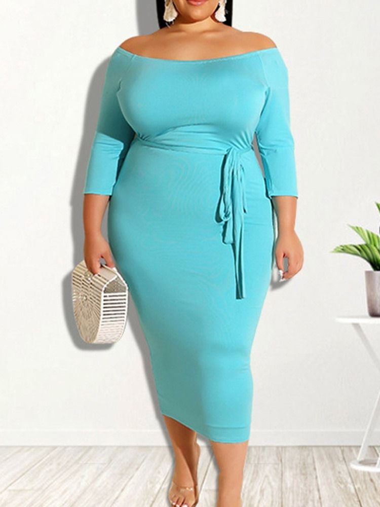 Mid-Calf Trekvartsermet Blonder Pullover Bodycon Kjole