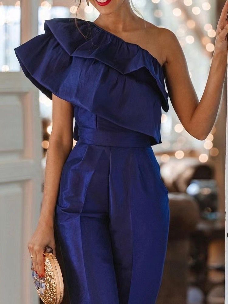 Mote Vanlig Ankellengde Høy Midje Slim Jumpsuit