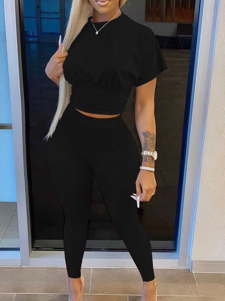 Mote Vanlig T-Skjorte Blyantbukser Rundhalset Kvinners Todelt Sett