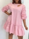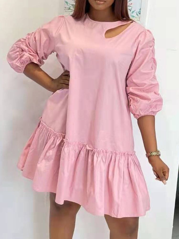 Over Kneet Patchwork Rundhals Ensfarget Kjole