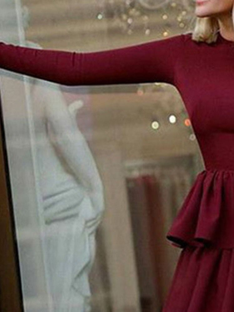 Plissert Mid-Calf Langermet Layered Kjole Mid Waist Dress