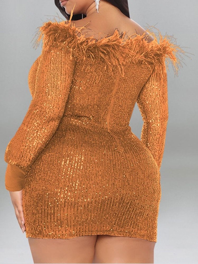 Plus Size Off Shoulder Langermet Paljetter Bodycon Vanlig Kjole