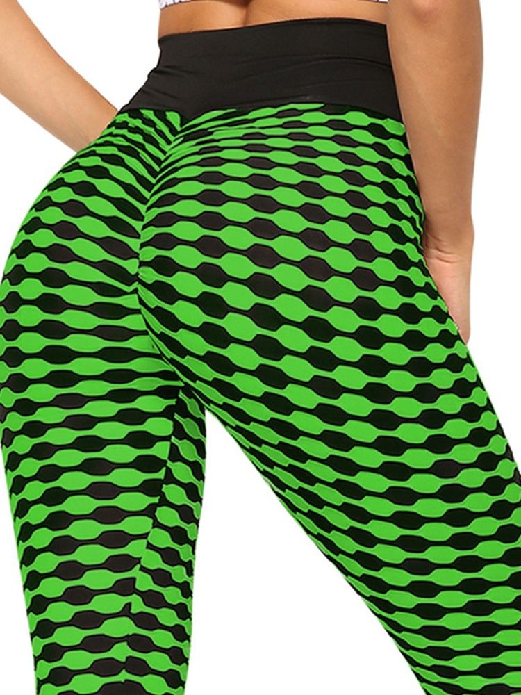 Print Stripe Anti-Svette Polyester Yogabukser Høy Midje Tiktok Leggings