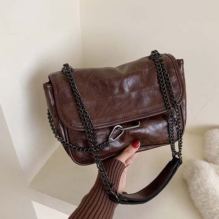 Pu Rutete Tråder Rektangulære Crossbody Vesker