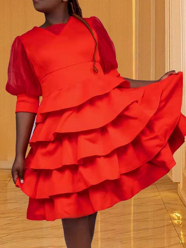 Rund Hals Kne-Lengde Falbala Sommer Vanlig Casual Dress
