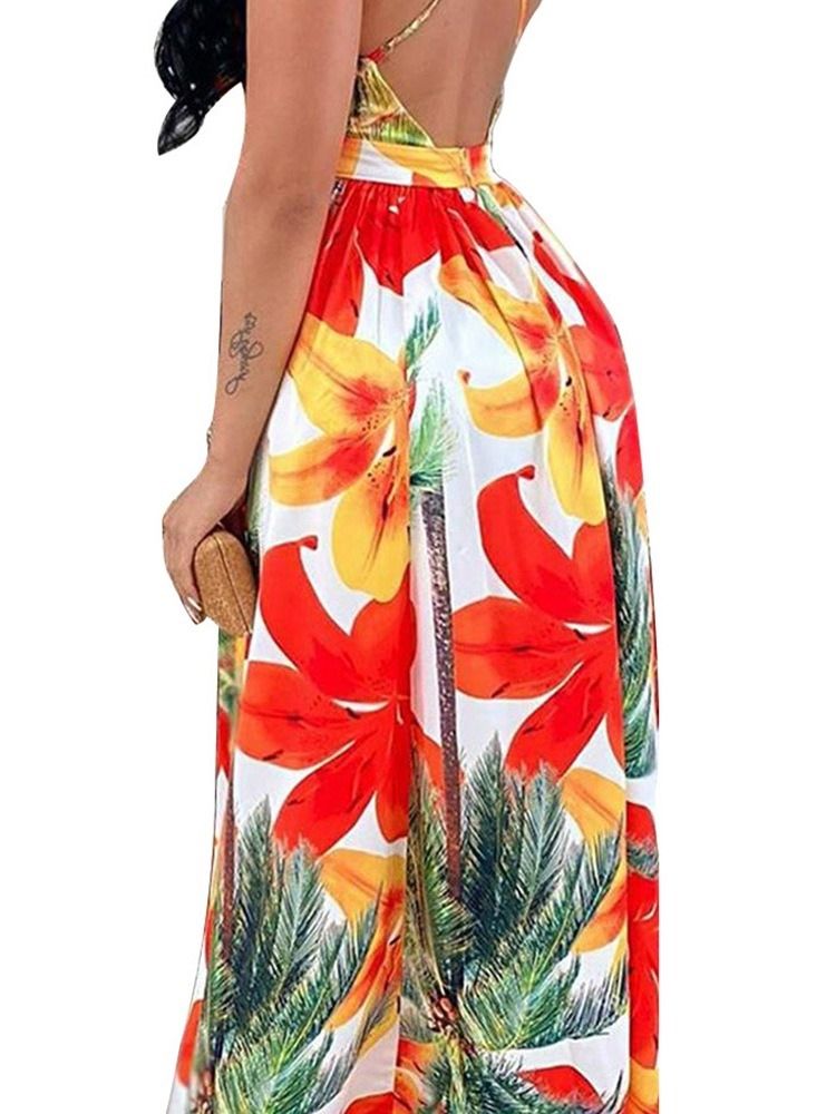 Ryggløs Ermeløs V-Hals A-Line Spaghetti Strap Dress