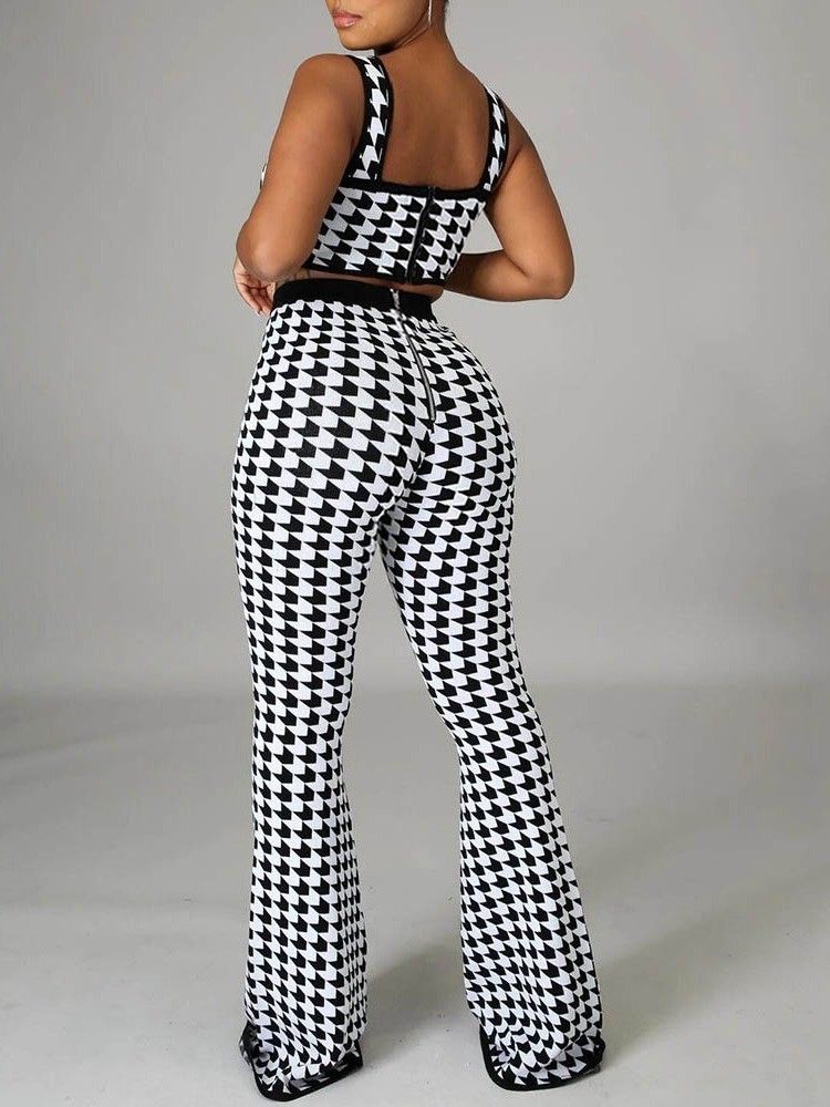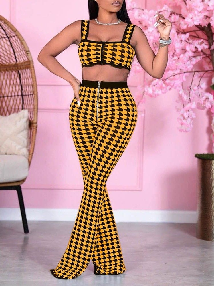 Sexy Bukser Print Bellbottoms Glidelås Kvinners Todelt Sett