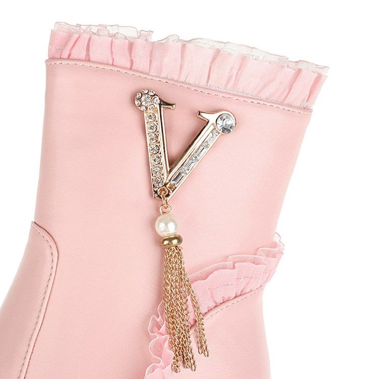 Side Glidelås Patchwork Rund Toe Korte Floss Støvler Boots