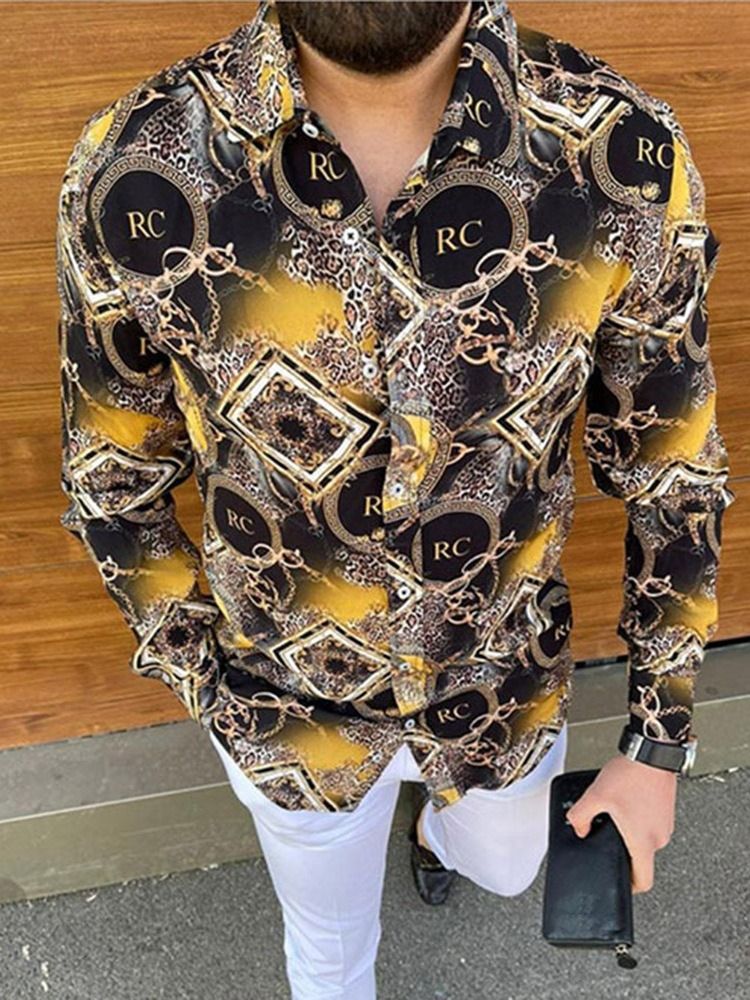 Skriv Ut Lapel Color Block Enkel-Breasted Slim Skjorte