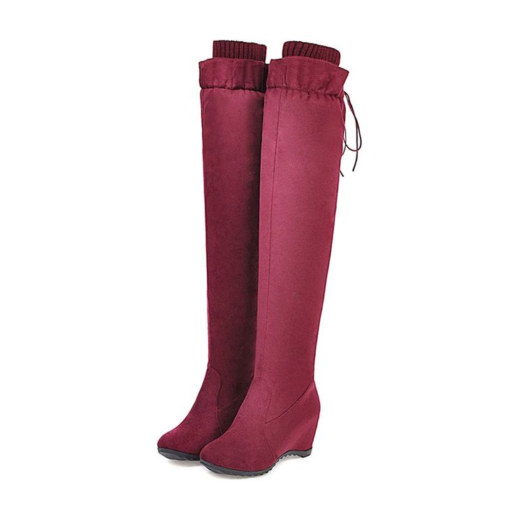 Slip-On Runde Støvler Med Jevn Tråd Og Knehøye
