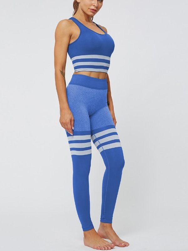 Sømløse Joint Stripe Nylon Pullover Yoga Klessett