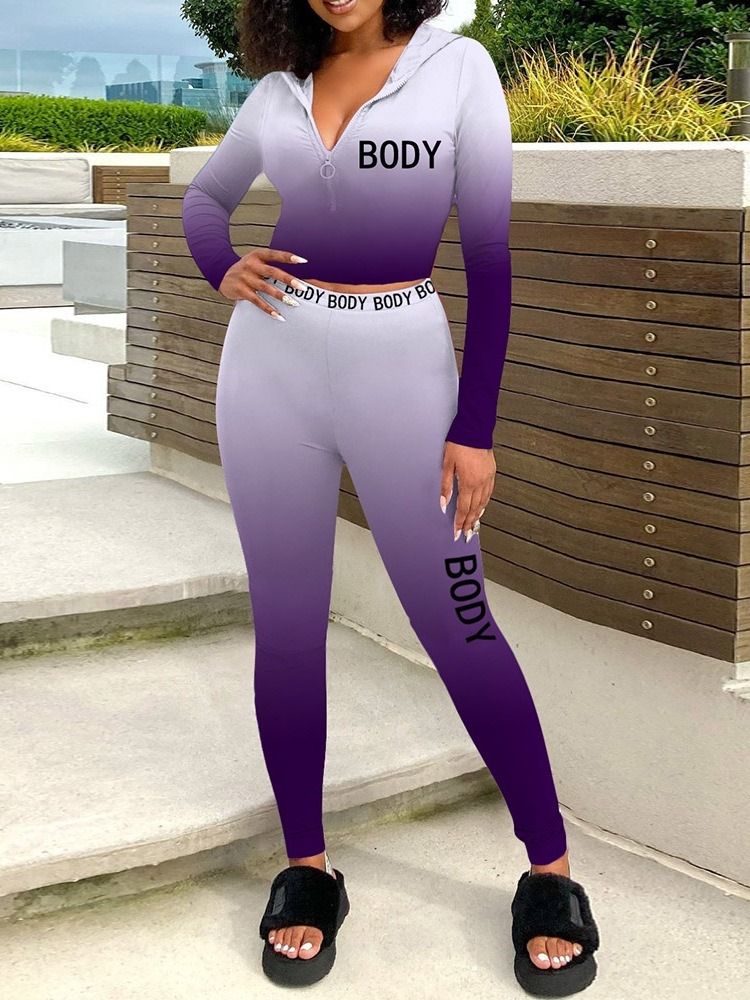 Sports T-Skjorte Bokstav Hette Blyant Bukser Todelt Sett