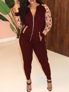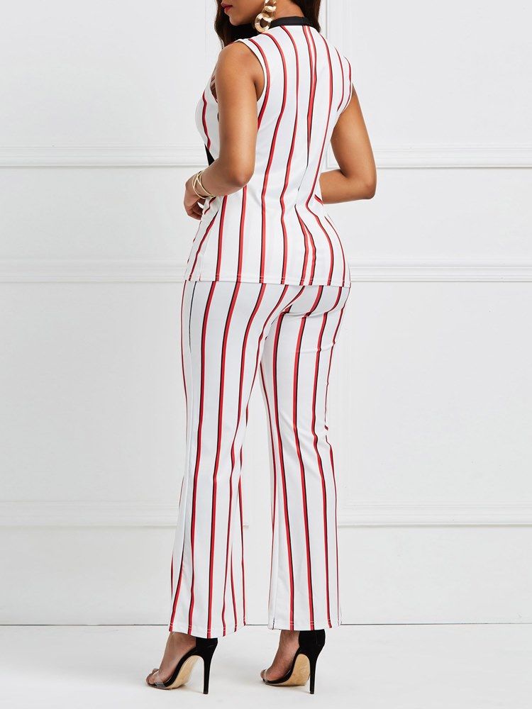Stripe V-Hals Jakke Og Bukser Damedress