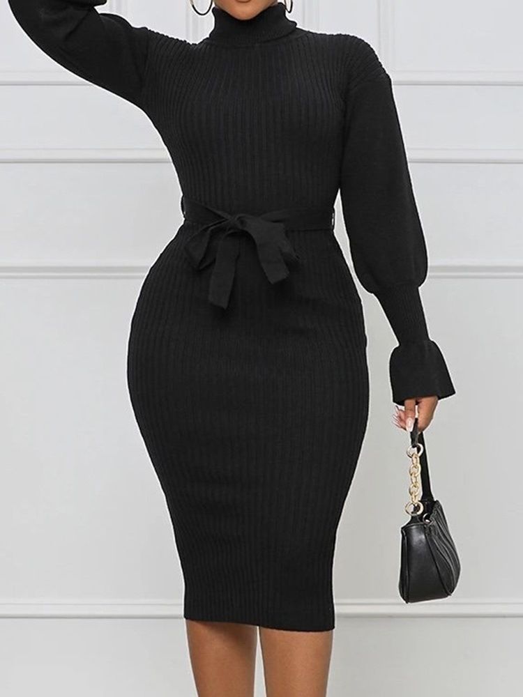 Turtleneck Mid-Calf Langermet Mote Høstkjole