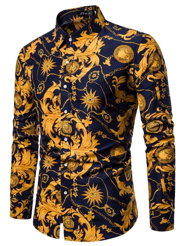 Uformell Fargeblokkknapp Enkeltspent Herreskjorte