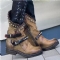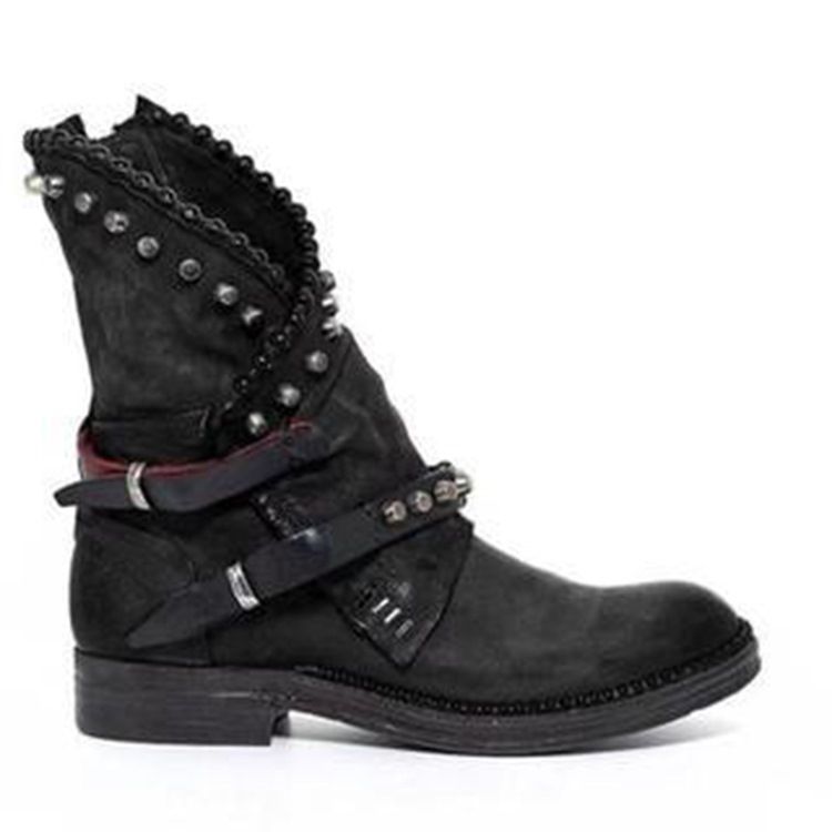Vintage Patchwork Sideglidelås Rund Tå Vestlige Støvler